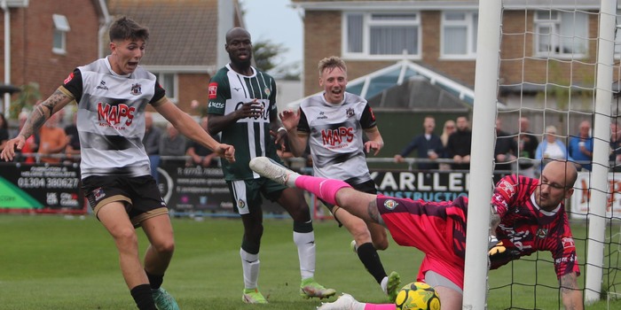 It was Macca's deep early corner beyond the far post to the leaping Billy Munday from which Deal created their first real threat but the Ashford defence eventually managed to scramble the ball clear. Hoops' top scorer Tom Chapman, who has scored five goals already this season, again posed a threat down the right flank but in truth both sides struggled to create many clear-cut chances in the opening 45 minutes.