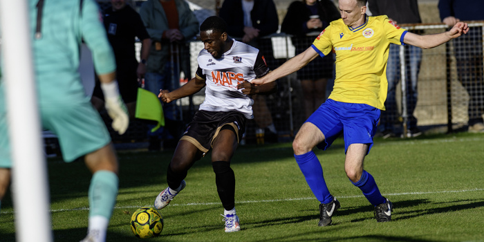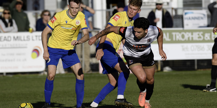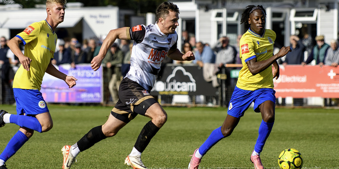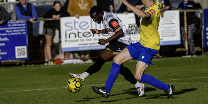 Eastbourne were starting to look distinctly rattled at this point and it's a fair bet that they would not have faced a forward line stacked with similar pace on many occasions last season. One consequence was that referee Marcin Indyk had to show a couple of yellow cards for late Eastbourne tackles in the run-up to half-time, and within three minutes of the re-start Deal virtually "put the game to bed" with a superbly-crafted third goal. Billy Munday won one of his countless headers in midfield and the ball fell for Ben Chapman who sent Smith racing through to produce a clinical finish.