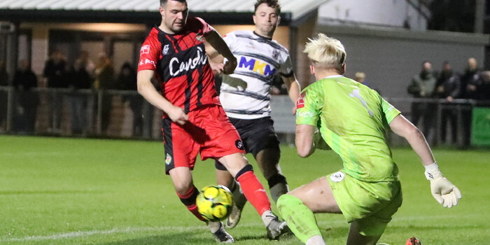 Ashford came out the stronger of the two sides, with manage Hume clearly demanding a better start from the Nuts & Bolts. They had a penalty appeal for handball waived away (46’), strong strike from distance saved (50’) as well as another shot at goal from the edge of the penalty area (52’); all testing the resilience of Deal’s defence.
