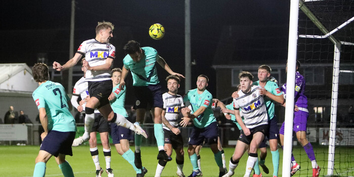 The game’s sixth and seventh goals fell to the visitors; the first of those from a corner, well met in the air by Hover who headed in (76’). With ten minutes to go, Eastbourne got their third. A fumble and some miss communication between Tonkin and another defender, resulted in second header into the net. 4-3 (80’).