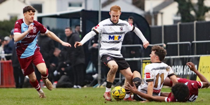 Deal Town played Hastings United Football Club on 21st February 2026 in the Isthmian League South East Division. Deal Town won three - nil against Hastings United in front of a crowd of 481 at the Charles Ground. The Deal goals came from Jamie Kennedy (2) and Owen Wilkinson.
