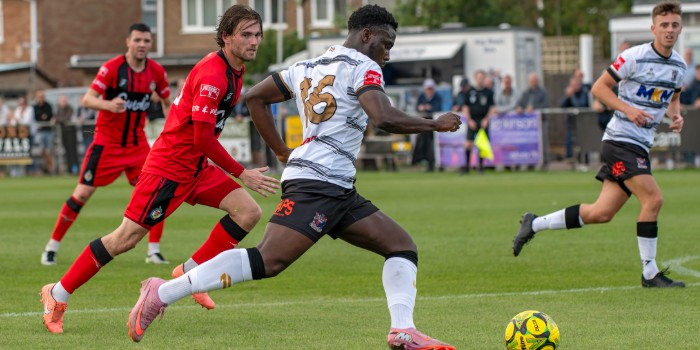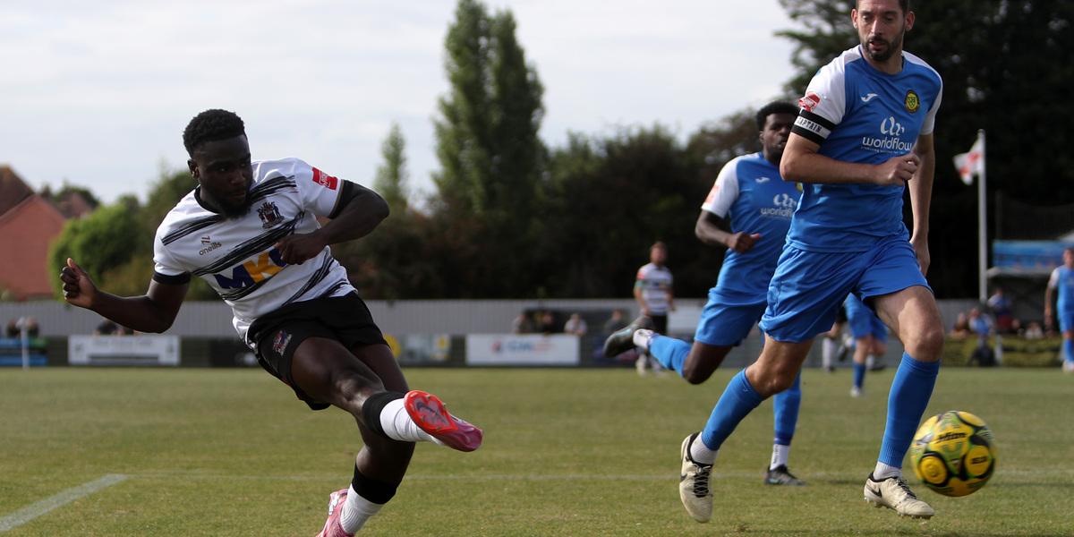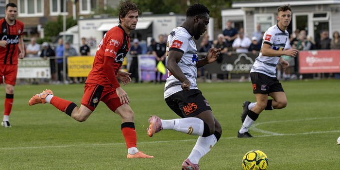 Ife joined as a right back and played the remainder of the 23/24 season and began 24/25 predominantly in that position. Ife always showed attacking flair and mindset and it wasn’t long before Kingy wanted to exploit it, sticking Ife in at right wing where he duly popped up with goals and assists for his team. One of the most memorable being when he came off the bench to score the third goal in front of a packed Charles Ground in the 3-1 win against Lydd Town. A game and goal which Ife recalls as his greatest moment in a Deal shirt to date. As the win secured the SCEFL League title in Ife’s first season for Deal in the 23/24 season