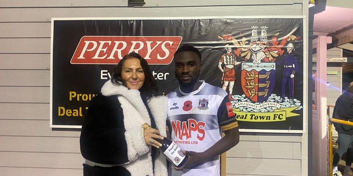 Tom Chapman was again the creator while at the other end goalkeeper Adam Molloy had made a couple of superb saves early in the second half to prevent Hythe from launching a genuine fightback. But Oni had already done enough to earn the MOTM award after taking his personal goal tally against Hythe this season to five and Hill, who is now eagerly looking forward to the Hoops' Kent Senior Cup quarter-final clash against his former club Dover Athletic, feels that Deal are getting used to life in the Isthmian League after winning promotion from the Southern Counties East League last season. He said: