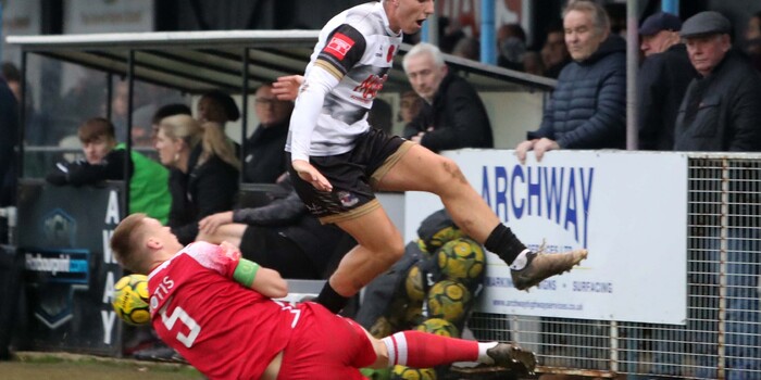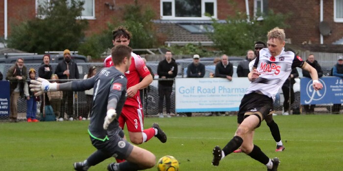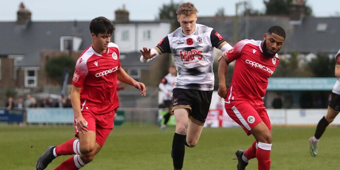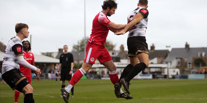 That was because, with Deal leading 1-0 through a 17th-minute Ife Oni strike, Hythe suffered a big blow just 10 minutes later when defender Ollie Gray was shown a straight red card for a poor challenge on Tom Chapman. Gray is one of Hythe's new signings whose acquisition has led to an upturn in their fortunes, and his early departure seemed to open the door for the Hoops to collect a comfortable three points.
