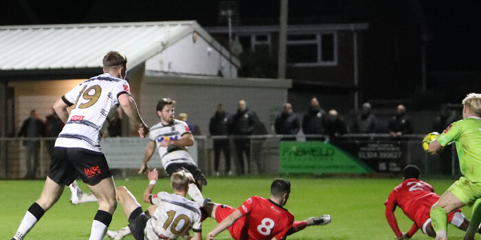 Ashford came out the stronger of the two sides, with manage Hume clearly demanding a better start from the Nuts & Bolts. They had a penalty appeal for handball waived away (46’), strong strike from distance saved (50’) as well as another shot at goal from the edge of the penalty area (52’); all testing the resilience of Deal’s defence.