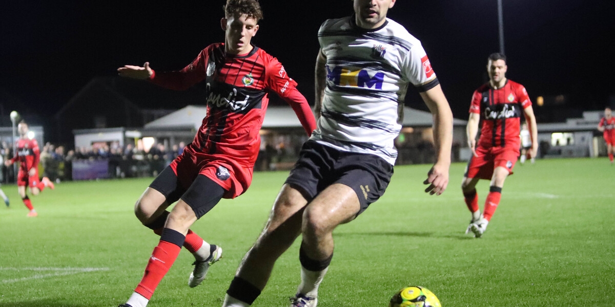 Carney then joined previously Hume, as well as the Ashford manager, in receiving a warning from referee Joss (22’) before Paxman launched an audacious cross field ball to find Hennessey in space out right. Quick to capitalise on the area in front of him, Hennessey moved swiftly into the penalty area but his cross evaded all (25’). This was almost replicated three minutes later when a similar start to the move ended with Miller firing over from close range (28’).