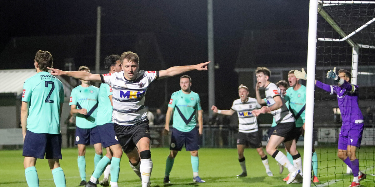 The deadlock was finally broken after some sustained pressure. A fumble by the Eastbourne keeper allowed Foster to send a composed volley into the inside netting (20’). Minutes.