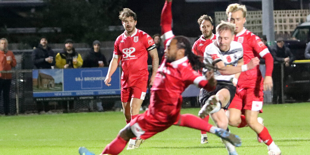 Faversham continued to struggle with the harsh wind playing its part as free kicks and set pieces often flew over the crossbar due to the intense conditions.